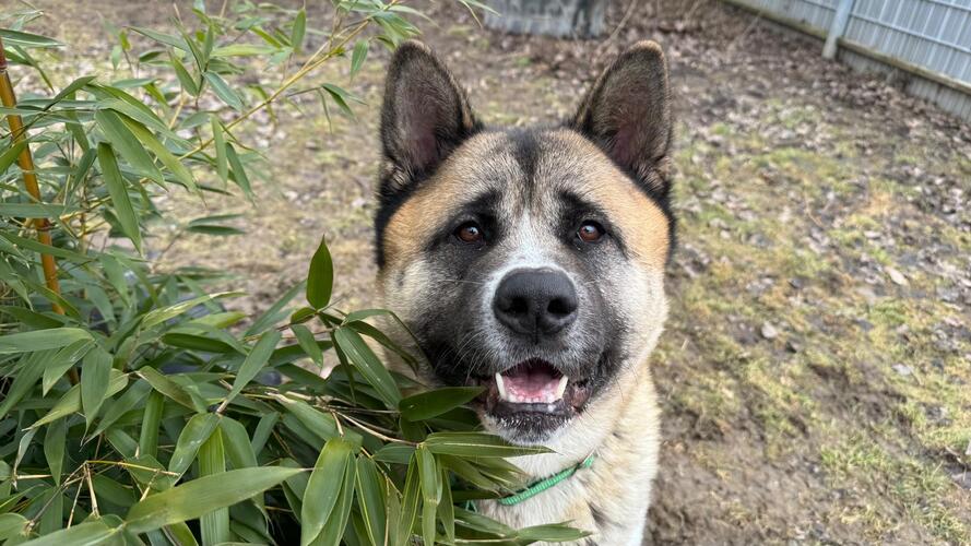 Akuma kam nach dem Tod seines Frauchens ins Tierheim. Er ist ein rassetypischer American Akita Rüde: stabil, souverän, charakterstark und so schnell bringt ihn nichts aus der Ruhe. Im Tierheim, sprich außerhalb seines Territoriums, zeigt er sich neutral bis freundlich zu fremden Menschen, jedoch sollte man bedenken, dass diese Rasse ursprünglich als Wachhund gezüchtet worden ist. Akuma liebt ausgedehnte, gemütliche Spaziergänge und ist brav leinenführig. Er lebte bei seinen Erstbesitzern in einer Familie mit Kindern, wo es aber mit Eintritt seiner Pubertät dazu kam, dass er die Kinder und den Zweithund der Familie eingeschränkt und zurechtgewiesen hat. Akuma braucht auf jeden Fall klare Regeln und eine gute Anleitung durch seinen Menschen, damit er versteht, dass nicht er das Ruder übernehmen muss, sondern seine Menschen dafür da sind. Wie er sich bei Besuch von Fremden im eigenen Haushalt verhält, konnte uns leider niemand sagen, da er dies nicht wirklich kennengelernt hat. Interessenten für ihn sollten sich gut über die Eigenheiten der Rasse informieren und über Hunde-Erfahrung verfügen. Unter den richtigen Voraussetzungen ist Akuma ein Traumhund, der mit seinem Menschen durch dick und dünn geht.