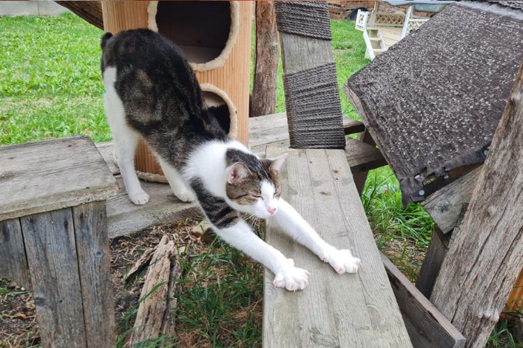 Ody fand einen Dauerpflegeplatz bei unserer Betriebsleiterin Doris, die sich solcher Handicap-Katzen angenommen hat und mehrere inkontinente Katzen pflegt. Er bekommt jetzt morgens und abends Blase und Darm ausmassiert, weshalb er abgesehen von dieser „Klo-Hilfe“ ein normales Katzenleben führen kann. Ody ist total gerne im abgesicherten Katzengarten auf der Pflegestelle unterwegs und ist ein total umgänglicher Kater, der schnell gelernt hat, dass der Handgriff nichts Böses bedeutet. Wir würden uns sehr über Paten für Ody freuen. Wer seinen Pflegeplatz auch mit Sachspenden unterstützten möchte: Ihr findet alles, was am Pflegeplatz benötigt wird, auf der Wunschliste!