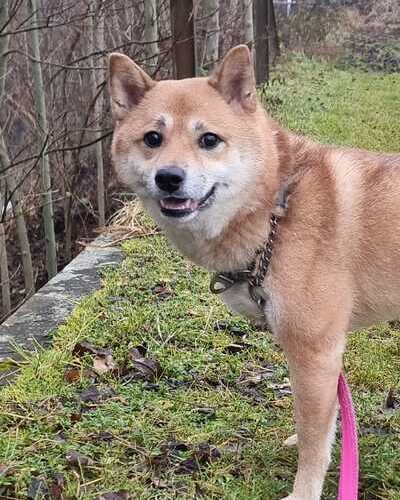 Shiba Inu Rüde „Teddy“ wurde vor 6 Jahren billig im Ausland gekauft. Er wurde im Tierheim abgegeben, weil er laut Besitzer nicht alleine bleiben kann, seit dem Umzug in eine andere Wohnung im Umgang mit Menschen unsicherer geworden ist und angeblich auch auf das 2 Monate alte Baby hingeschnappt hat. Seine Besitzer ließen Teddy mit Psychopharmaka „ruhig stellen“, was aber nicht zum gewünschten Erfolg geführt hat. Gemeinsam mit tierärztlicher Unterstützung haben wir mittlerweile einen Plan erstellt, die Medikamente langsam ausschleichen zu lassen, damit wir die Möglichkeit haben, den „echten Teddy“ kennenzulernen. (Psychopharmaka sollten nie die erst oder einzige Wahl sein, um einen Hund zu beruhigen. Als begleitende Therapie haben sie bei schweren Fällen natürlich ihre Berechtigung.) Mit einem souveränen und fairen Umgang zeigt Teddy aktuell kein Verhalten, das nicht typisch für einen Shiba Inu wäre. Teddy hatte 6 Jahre keinerlei Umgang mit anderen Hunden. Er wird bei uns alles kennenlernen dürfen, sobald er wieder „er selbst“ ist.