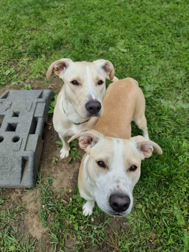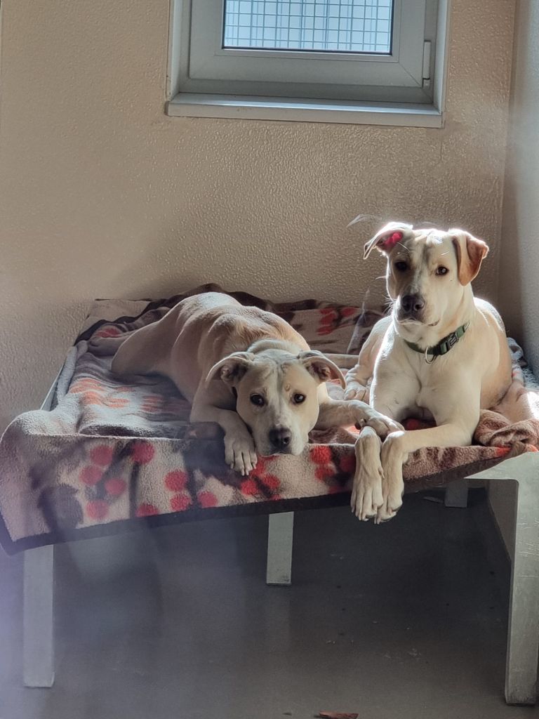 Staffordshire Terrier Hündin „Velvet“ kam gemeinsam mit ihrer Schwester „Malenia“ in Kooperation mit einem Tierschutzverein zu uns ins Tierheim. Die beiden Schwestern wurden als Welpen im Tierheim abgegeben und lebten seitdem gemeinsam dort. Von einer Vermittlung gemeinsam, sehen wir aber eher ab. Sie sind sehr nett und freundlich zu ihrem Umfeld, tauen mittlerweile recht schnell auf und sind lustige und quirlige Mädels. Beide Hunde sind sehr gut zu motivieren sich neuen Situationen zu stellen und zu lernen. Sie gehen schon recht brav an der Leine, tragen den Maulkorb gut, haben schon beide das Auto kennen gelernt und lernen gerade so gut es geht den menschlichen Alltag kennen. In den richtigen Händen, werden sie mit Sicherheit Traumhunde, die mit ihren Menschen durch dick und dünn gehen. Potenzielle neue Besitzer müssen sich bewusst sein, dass beide Hunde gefordert und gefördert werden wollen.